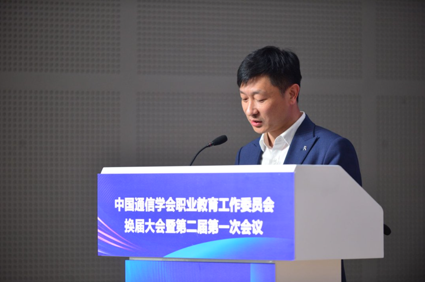 随后,主任委员温涛发表任职讲话,对学会的指导和各位委员的信任表示衷心感谢。他表示,这份信任既是荣誉更是责任,第一届职教工委在学会悉心指导下,围绕行业开展与职教改革需求,召开专题研讨、师资培训、产教对接等一系列工作,打造公益云讲堂等智慧共享平台,有助于行企校深度融合,各项工作取得阶段性成效。站在“十五五”开局的新起点,职教工委将以习近平新时代中国特色社会主义思想为指导,深入落实教育强国建设相关部署,紧扣信息通信产业转型升级需求,以第二轮“双高”建设为抓手,推进职业教育教学关键要素改革。同时,他与全体委员共勉:坚守政治方向、服务开展大局,聚焦改革主线、抓实关键任务,联动政行企校、贯通产教科创,拓展国际视野、有助于职教出海,坚持守正创新、提升支撑效能,奋力有助于信息通信领域职业教育再上新台阶。
